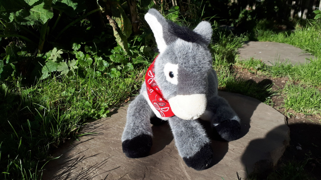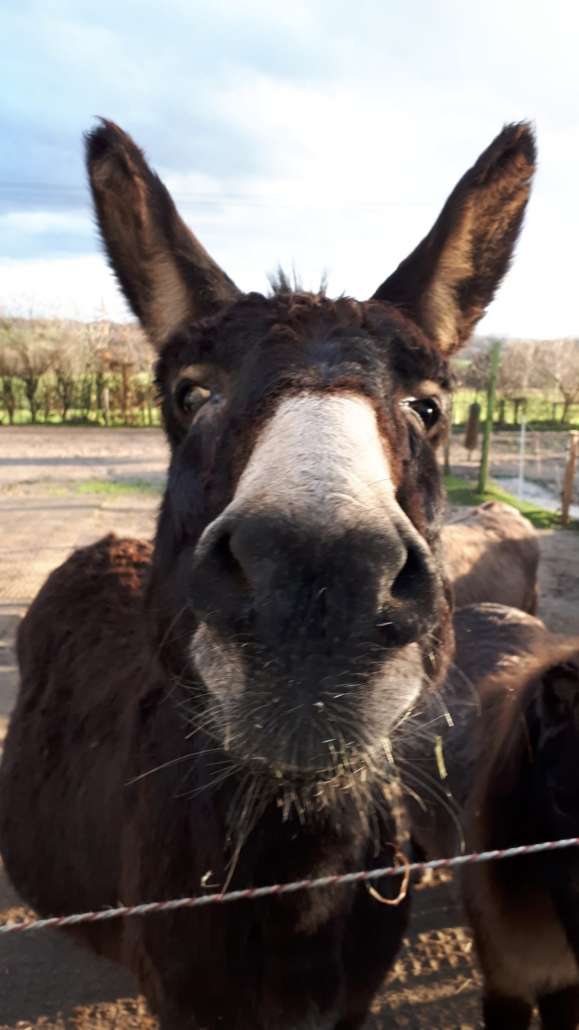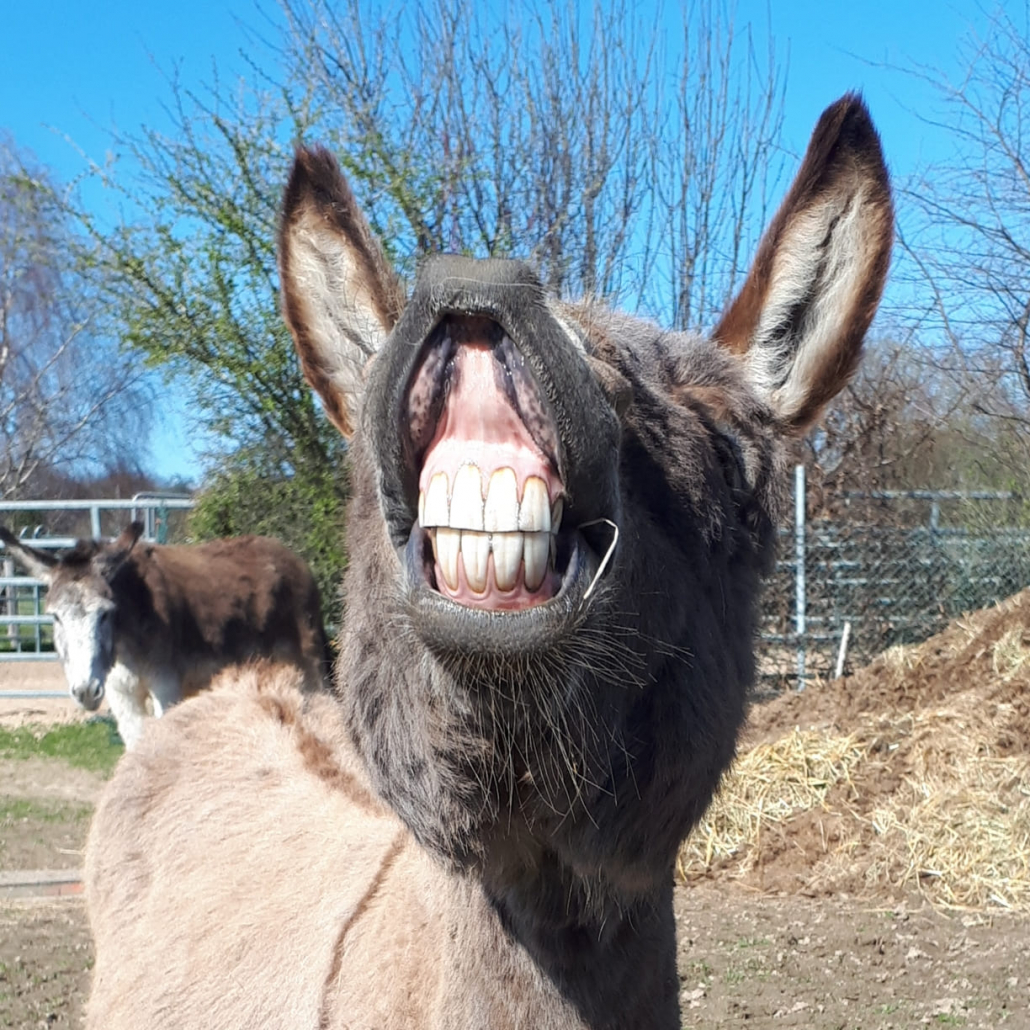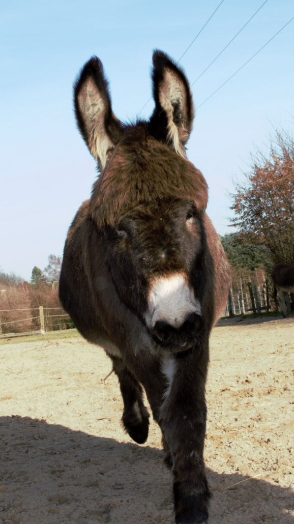 Geboren 2014 und 101 cm groß. Ein Hausesel wie ihn viele kennen. Keck, zuvorkommend und überaus freundlich.